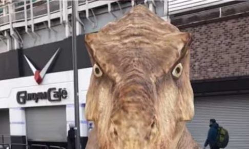 Adobe Aeroを使って、秋葉原ガンダムカフェの前に恐竜を出現させてみました!